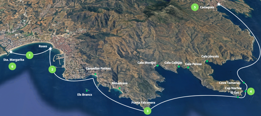 Durante el regreso a Roses, disfrutarás de vistas panorámicas de la Bahía de Roses que forma parte del Club de las 30 Bahías más bonitas del mundo, cerrando una experiencia que combina naturaleza, cultura y relajación.